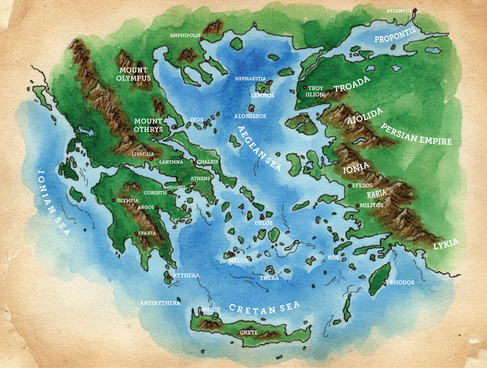 The story unfolds across the ancient Hellenic world in 420 BC, during the fragile and contentious peace brokered by Nicias between the Athenian-led Delian League and the Spartan-led Peloponnesian League; a peace that masks deeper, older conflicts.